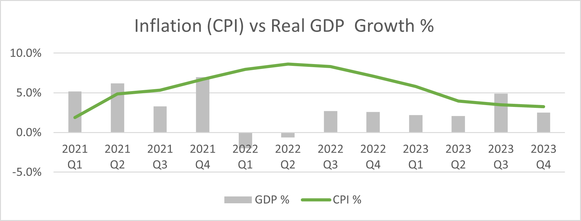 Moreover, while we have experienced inflation higher than the 2% target from the Federal Reserve, it's encouraging to see that GDP growth rates have remained steady. This indicates a level of underlying economic stability, which is a positive sign for long-term growth.
